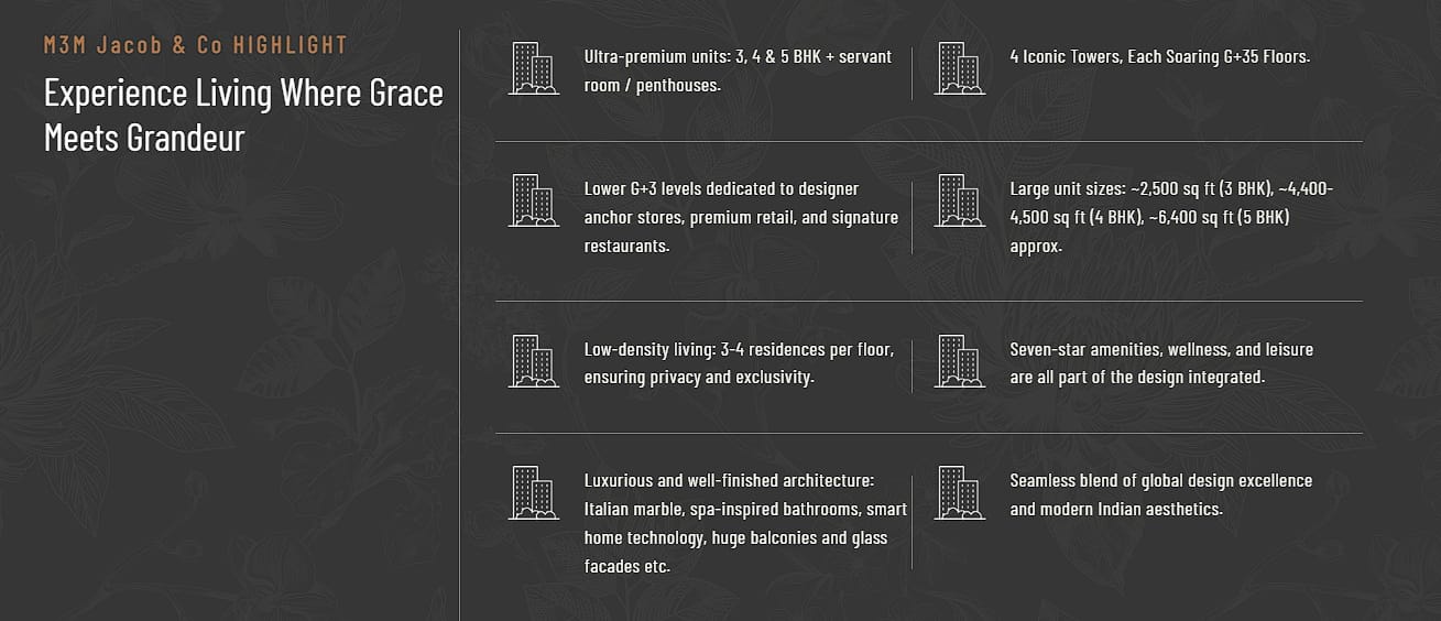 With pricing starting from ₹8.75 Cr and a structured 25:25:25:25 payment plan, the project is clearly positioned for a premium segment. EOI requirement—₹25 lakh for 3 BHK and ₹50 lakh for larger units—also ensures that buyers are serious. This kind of structured entry often helps maintain the quality of the community. With only around 200 units, supply remains controlled. This can support value stability over time, especially in a high-demand corridor.